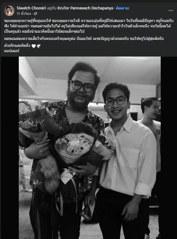 วันที่ 14 กุมภาพันธ์ 2569 เพจPassakorn Sukchaiwrangkun โพสต์แจ้งข่าวเศร้าถึงการจากไปอย่างกะทันหันของ “ต่อ ปัณณวัชร์ เดชะปัญญา” หรือ ต่อ KPN นักร้องหนุ่มเสียงคุณภาพและครูสอนร้องเพลงชื่อดัง สร้างความอาลัยให้กับครอบครัว เพื่อนศิลปิน และแฟนเพลงจำนวนมาก