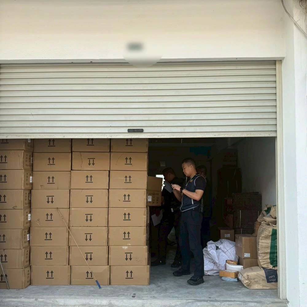 กระทั่งวันที่ 4 มีนาคม 2569 เจ้าหน้าที่ตำรวจ กก.4 บก.ปคบ. เข้าตรวจค้นโกดังแห่งหนึ่ง พบชายสัญชาติจีนชื่อ Mr. Junxiao แสดงตัวเป็นผู้ดูแลสถานที่ และตรวจยึดสินค้าปลอมจำนวนมาก อาทิ