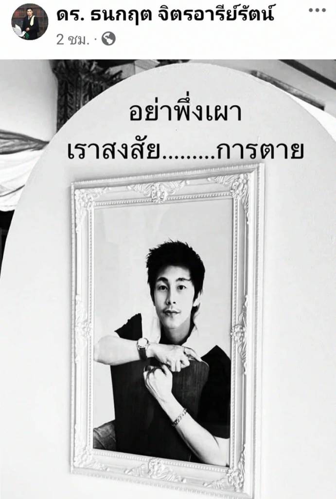 โดยวันแรกหลังจากที่ร่างถูกนำออกมาจากโรงพยาบาล ซึ่งได้ทำการผ่าพิสูจน์มาแล้ว มีการทาแป้งจัดแต่งหน้าศพให้ ตนเห็นเพียงแค่หน้ากับข้อมือที่ยื่นออกมาไว้ให้รดน้ำเท่านั้น สภาพศพยอมรับว่าแยกไม่ออกเลยว่า ผู้ตายเสียชีวิตด้วยโรคหรือถูกวางยา