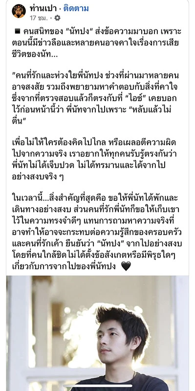 จากการสอบสวนเพื่อนของผู้ตาย ซึ่งอยู่ภายในบ้านเกิดเหตุ ให้ปากคำว่า หลังผู้ตายเลิกงานกลับมาบ้าน เพื่อพักผ่อนและนั่งดื่มกินสุรากับกลุ่มเพื่อน ก่อนที่ผู้ตายจะเข้าห้องไปนอนพักผ่อนในห้องนั่งเล่นชั้นล่าง จนมาในตอนเช้าจึงพบว่า ณัฐวุฒิ ปงลังกา นอนเสียชีวิตอยู่ที่พื้นห้อง โดยไม่ทราบสาเหตุ