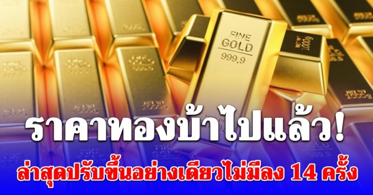 ราคาทองบ้าไปแล้ว ล่าสุดปรับขึ้นอย่างเดียวไม่มีลง 14 ครั้ง 8 หมื่นอยู่แค่เอื้อม!