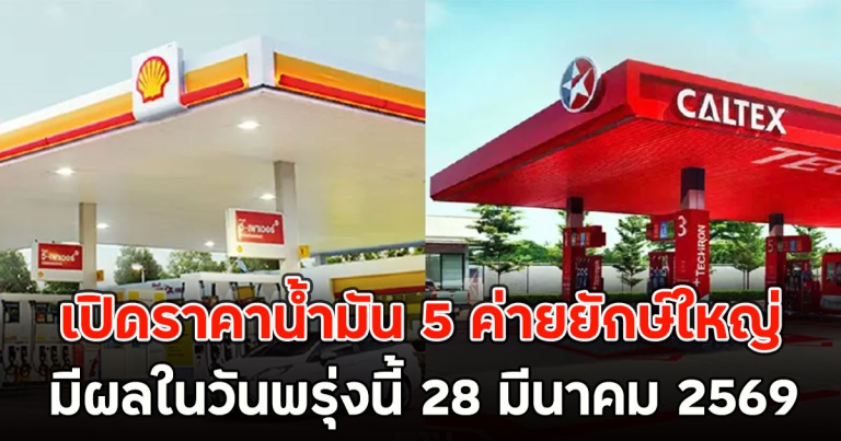 เปิดราคาน้ำมัน 5 ค่ายยักษ์ใหญ่ มีผลในวันพรุ่งนี้ 28 มีนาคม 2569