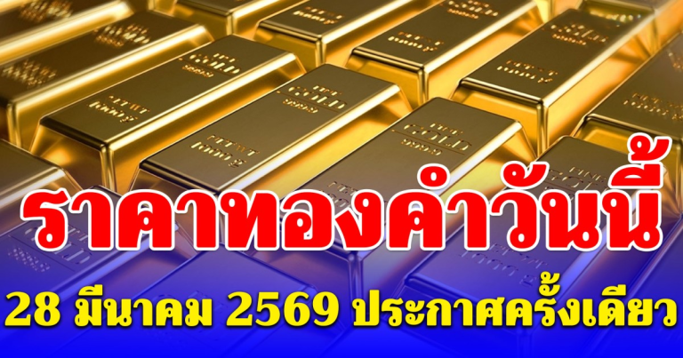 ราคาทองคำวันนี้ 28 มีนาคม 2569 ประกาศครั้งเดียว