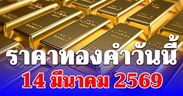 ราคาทองคำวันนี้ 14 มีนาคม 2569 ประกาศครั้งเดียว