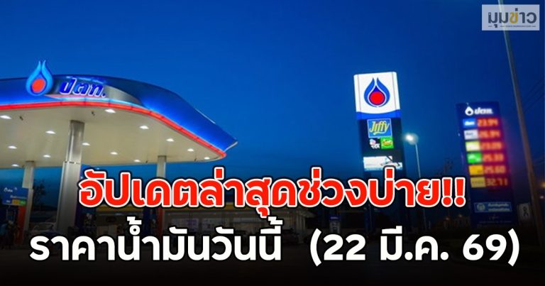อัปเดตล่าสุดช่วงบ่าย!! ราคาน้ำมันวันนี้ (22 มี.ค. 69)