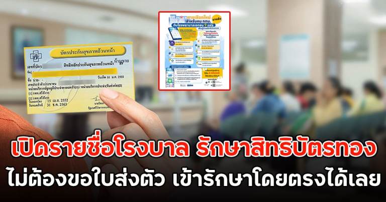เปิดรายชื่อโรงบาล รักษาสิทธิบัตรทอง ไม่ต้องขอใบส่งตัว เข้ารักษาโดยตรงได้เลย