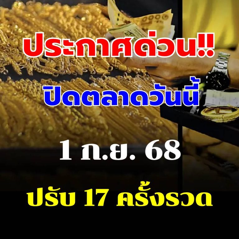 ราคาทอง ปิดตลาดวันนี้ 1 ก.ย. 68 ปรับ 17 ครั้งรวด
